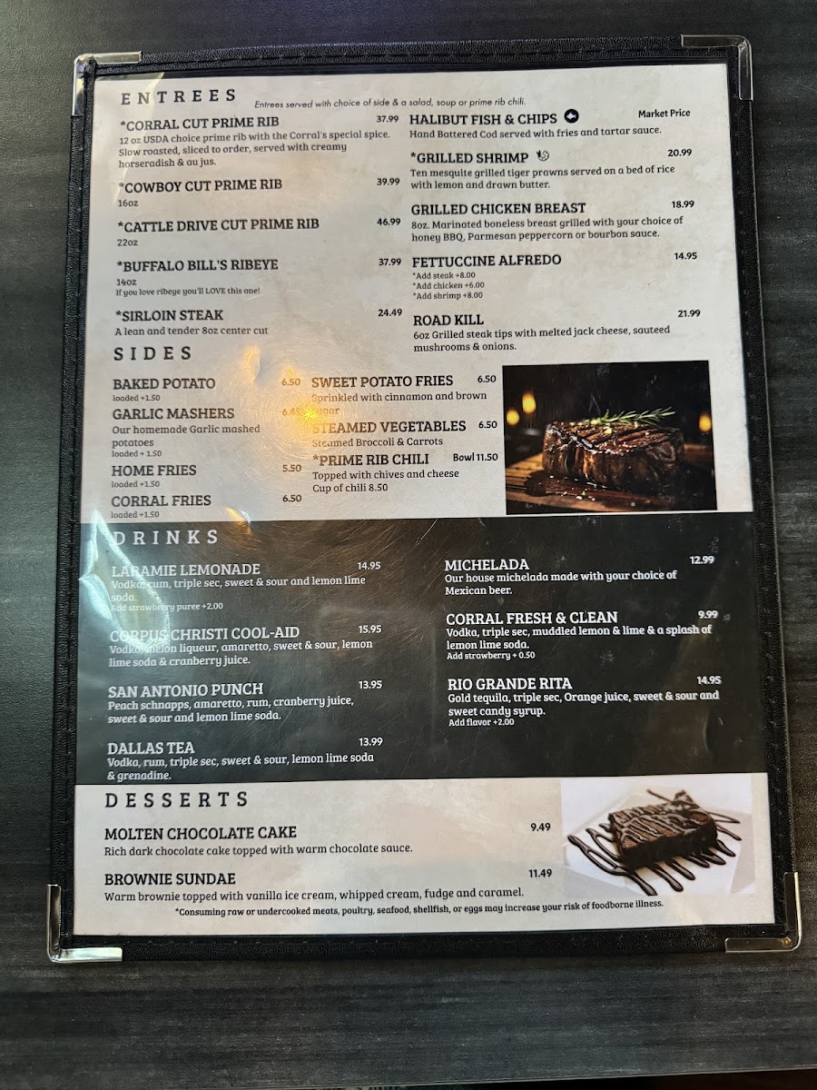 At The Corral Grill & Taphouse Menu, guests are treated to a delightful selection of hearty meals and refreshing beverages. Located in the heart of Tillamook, Oregon, this local favorite is known for its laid-back atmosphere and flavorful offerings. The menu showcases a variety of mouthwatering options, including perfectly grilled steaks, fresh seafood, and satisfying burgers. Whether you're in the mood for a savory appetizer or a rich dessert, there's something to satisfy every craving. Pair your meal with a cold craft beer or a signature cocktail from the extensive drink list, and enjoy the welcoming vibe that makes dining here a memorable experience. The Corral Grill & Taphouse is a great place to gather with friends and family, savor delicious food, and unwind with a drink in hand.